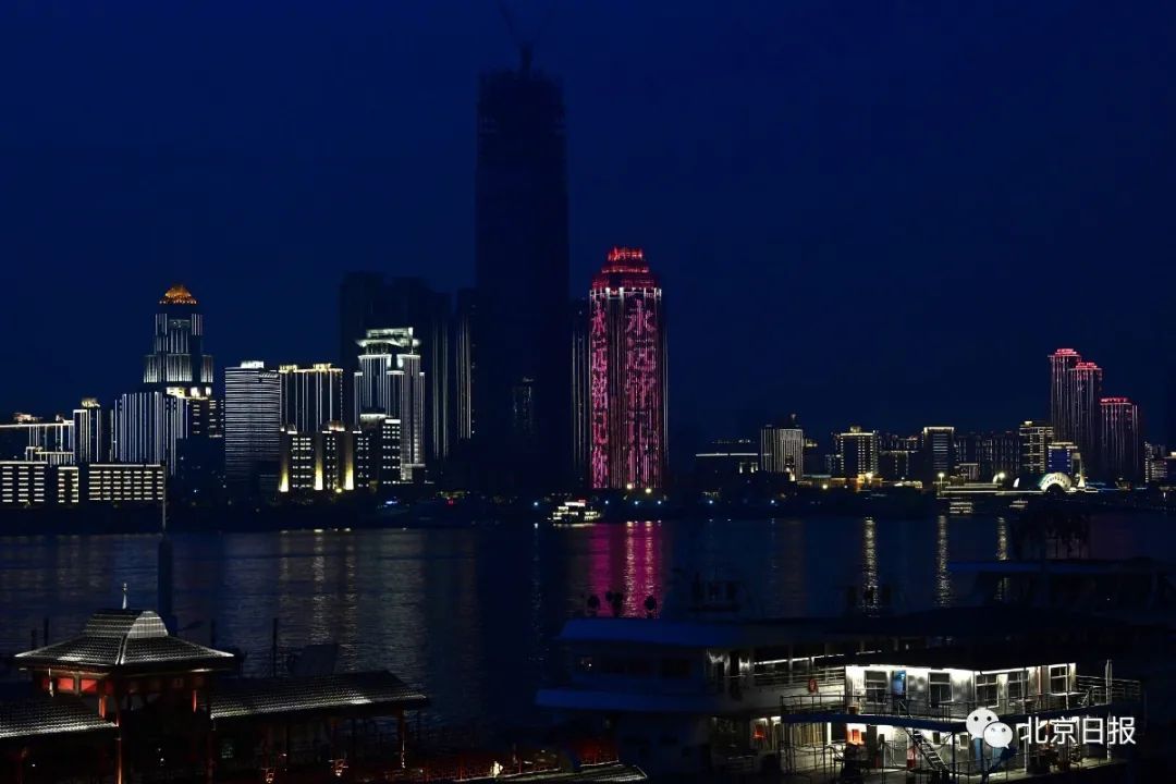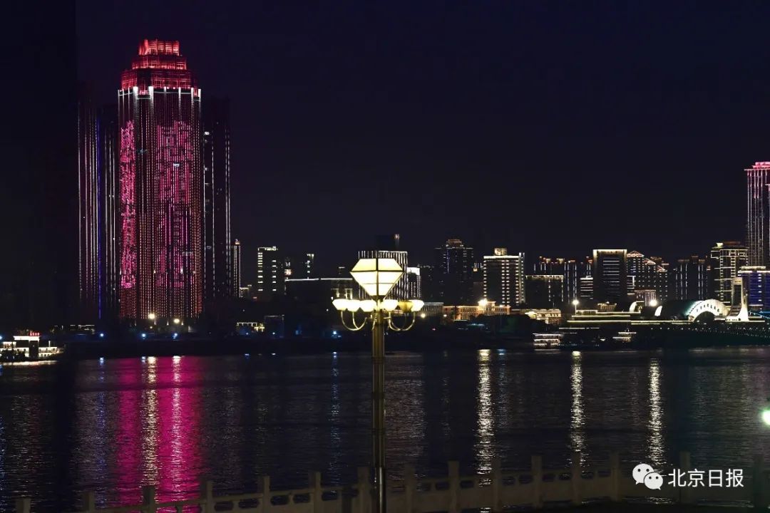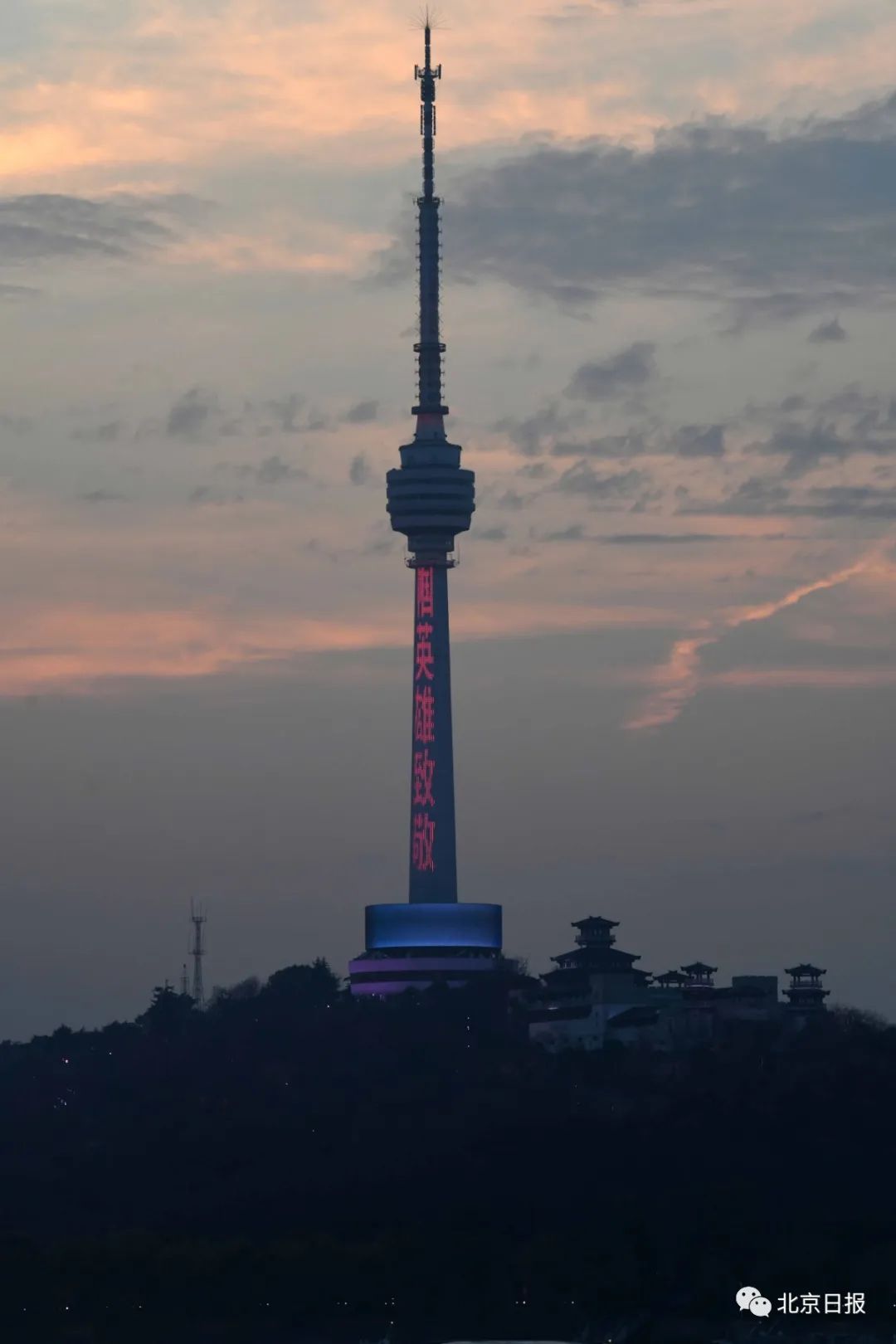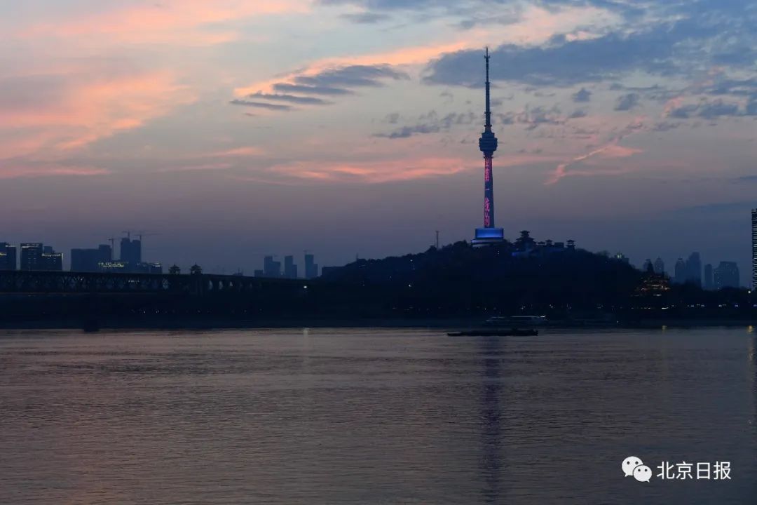 今天傍晚,几抹晚霞擦亮了武汉的天空,随着夜幕降临,长江两岸多处地标建筑外立面灯光亮起,一条条感人的红色灯光字幕缓缓打出———